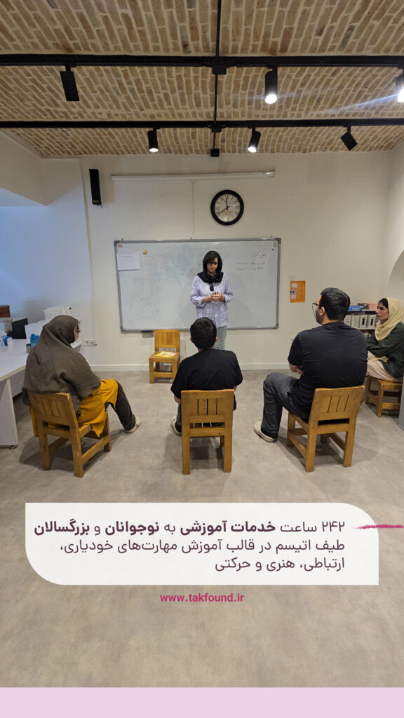 ۲۴۲ ساعت آموزش مهارتهای خودیاری، مهارتهای ارتباطی، مهارتهای هنری و مهارتهای حرکتی به نوجوانان و بزرگسالان طیف اتیسم ارائه شد.